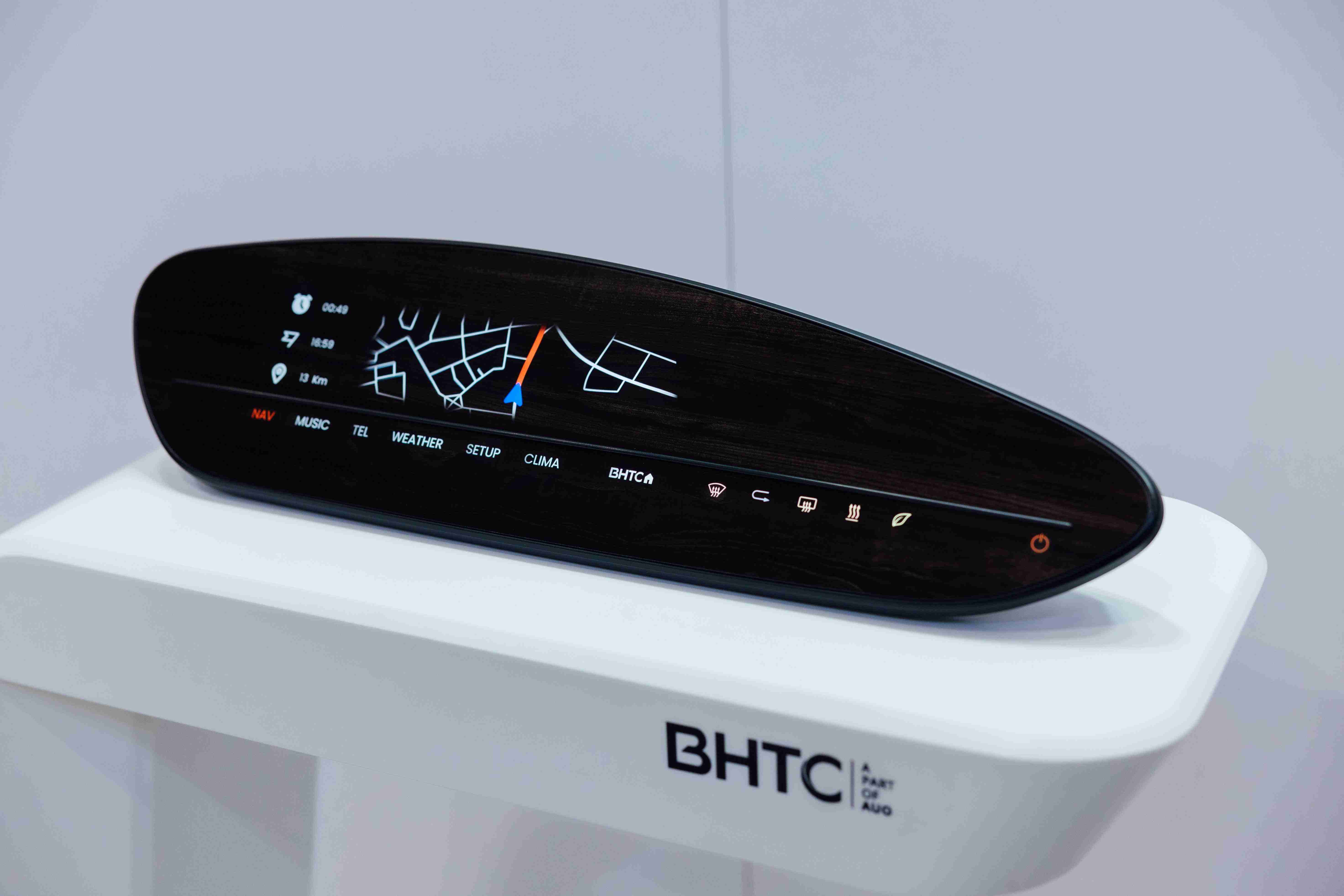 BHTC的木纹车用显示器(Display Behind Wood)将无缝木质表面与显示器结合后,,,,可以融入车内设计中,,,提供驾驶优质的视觉效果,,,加上其无边框的设计和亮度调控,,,,创造更优质的车内体验。。。