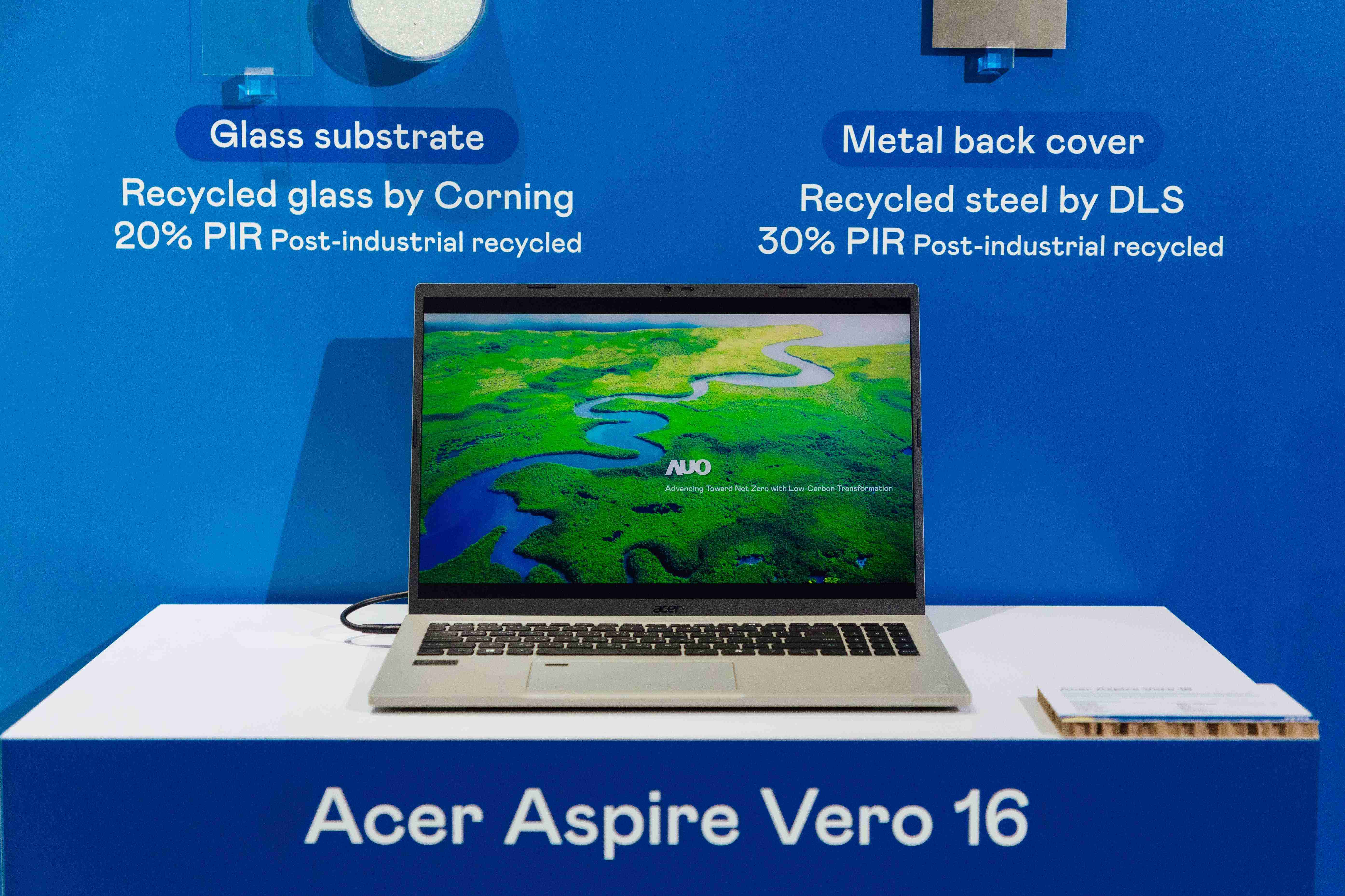 全球首款笔记型电脑采用CG电子100%绿电制造的面板,,,,结合PCR外亦使用工业后回收材料(PIR),,,例如回收玻璃和金属,,,减少对环境的影响。。。