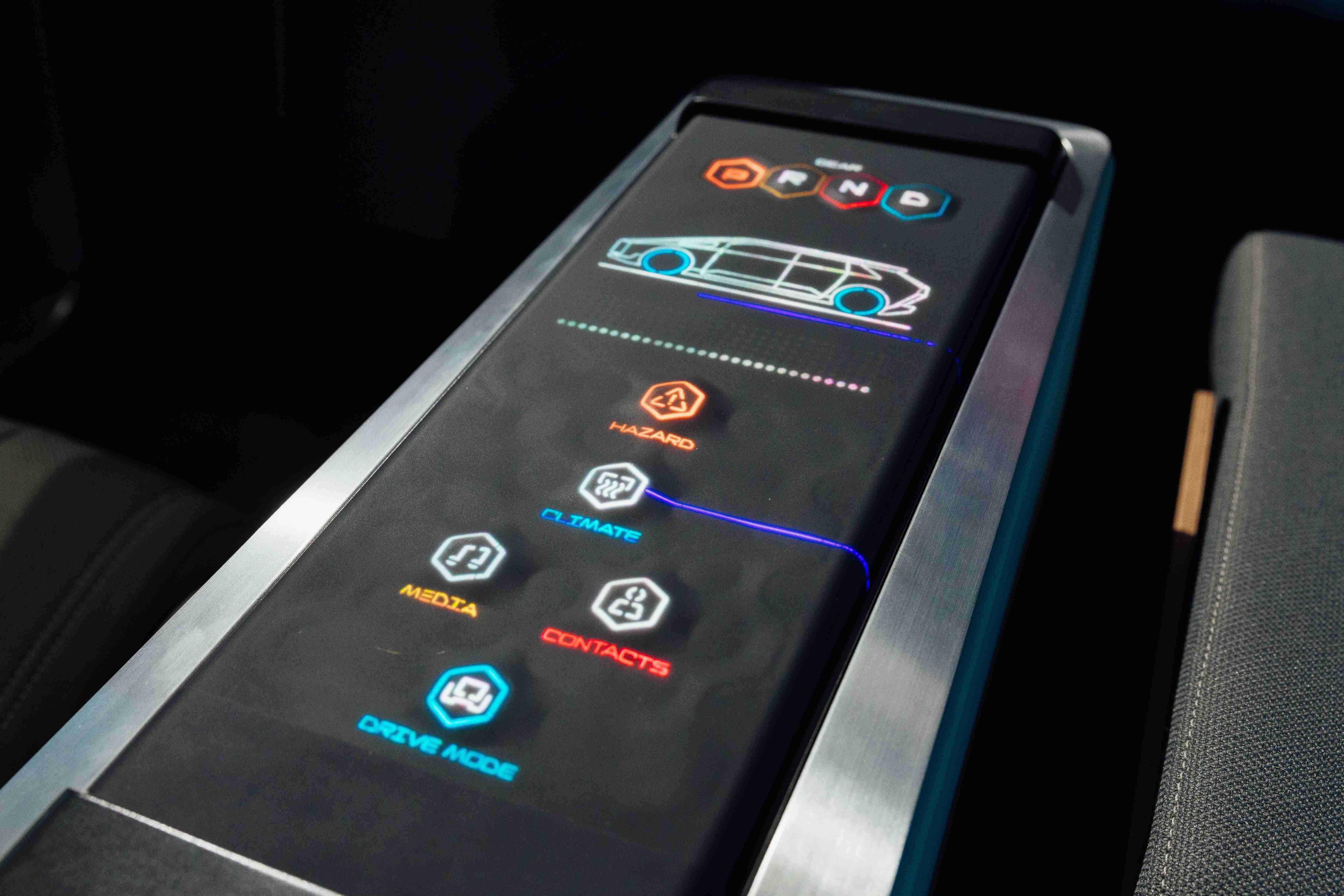 多变形态中控显示(Morphing Center Control)拥有动态变化的表面,,,平时常态显示车辆功能,,进一步操作时,,,,则会隆起成为3D 按钮,,,,并在触控时以震动回馈,,,以精细的操作开创人机互动新境界。。。。