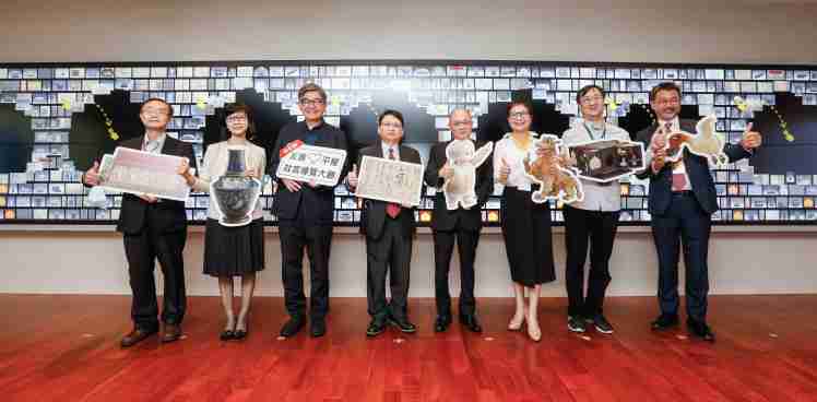 CG电子携手创利空间为故宫建置的智慧文物互动导览墙及轮播墙,,,,今日正式启用。。(左四:CG电子新事业暨投资管理总部副总经理杨本豫、、、、右四:故宫博物院院长吴密察、、、、右三:太极影音董事长黄宝云)