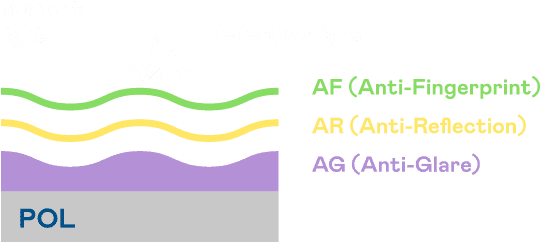 A.R.T.CG电子光电发展出独家的表面处理跟多层镀膜技术,,,让外部光线照射到显示器表面时所产生的反射光大幅降低。。。。 |