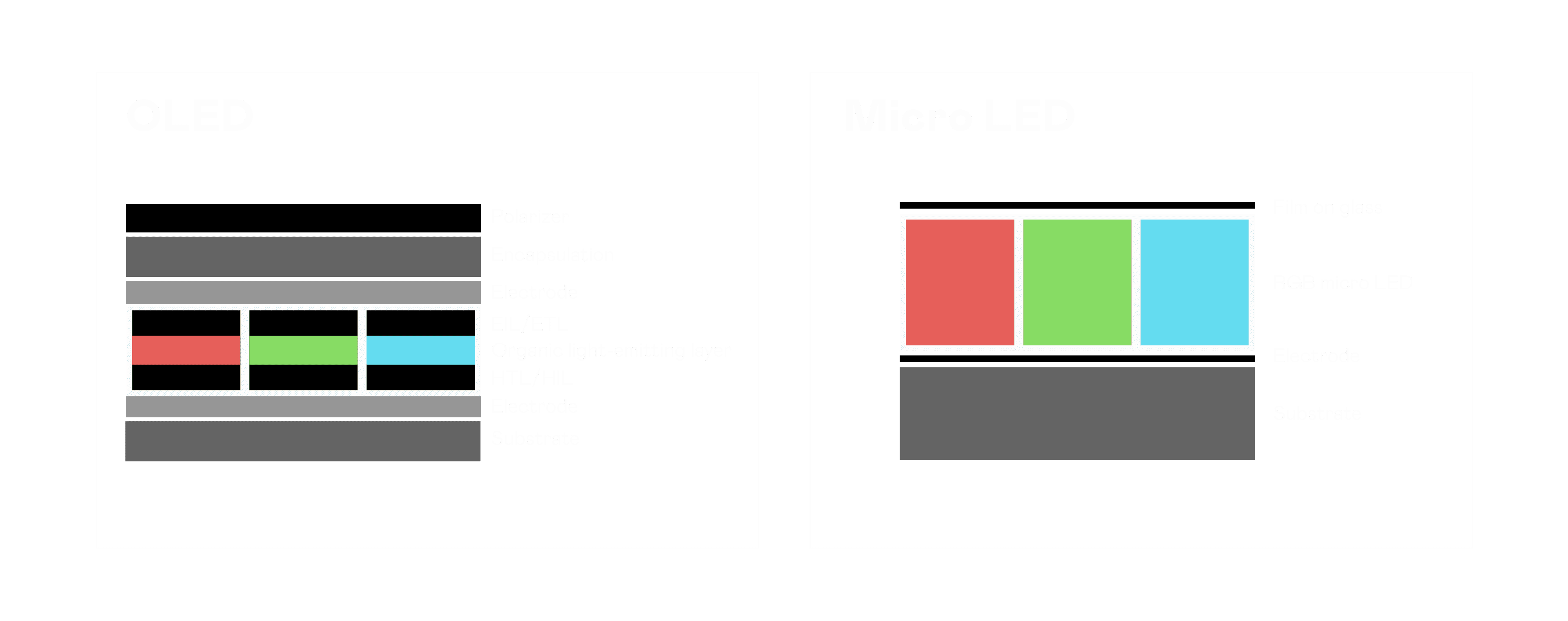 以 LED 做为显示画素,,,可让 LED 的发光效率发挥到极致,,,,从而让显示器具备优异的亮度表现,,,不论是在户外或室内,,,,均具备出众的显示效果。。同时,,,,与使用有机材料的 OLED 相比,,,LED 具备更稳定、、寿命更长的特性,,,不仅不会有画面烙印问题,,,而且更不容易出现故障、、坏点。。